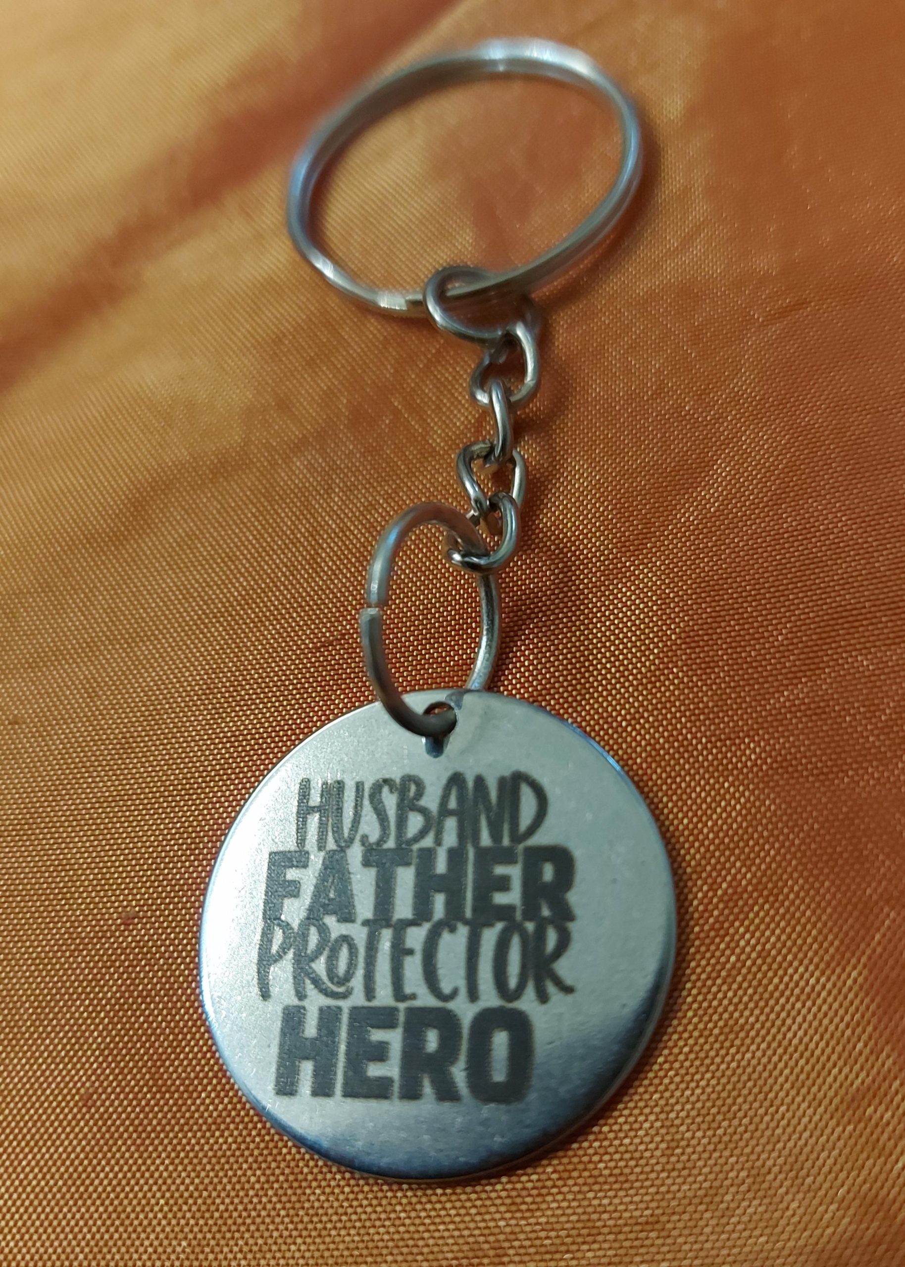 Laser-engraved Stainless-steel keyring for Dad’s.