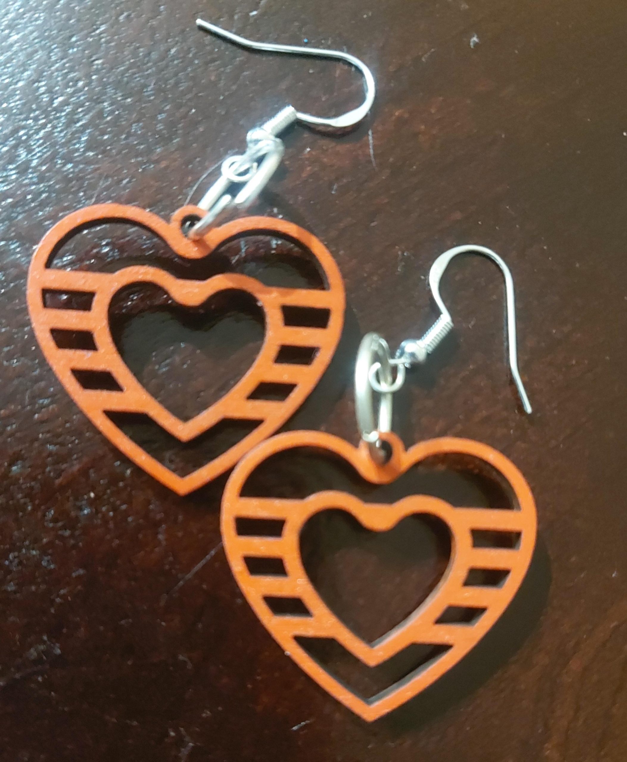 Sterling Silver 925 hooks on wooden heart shape earrings (red)