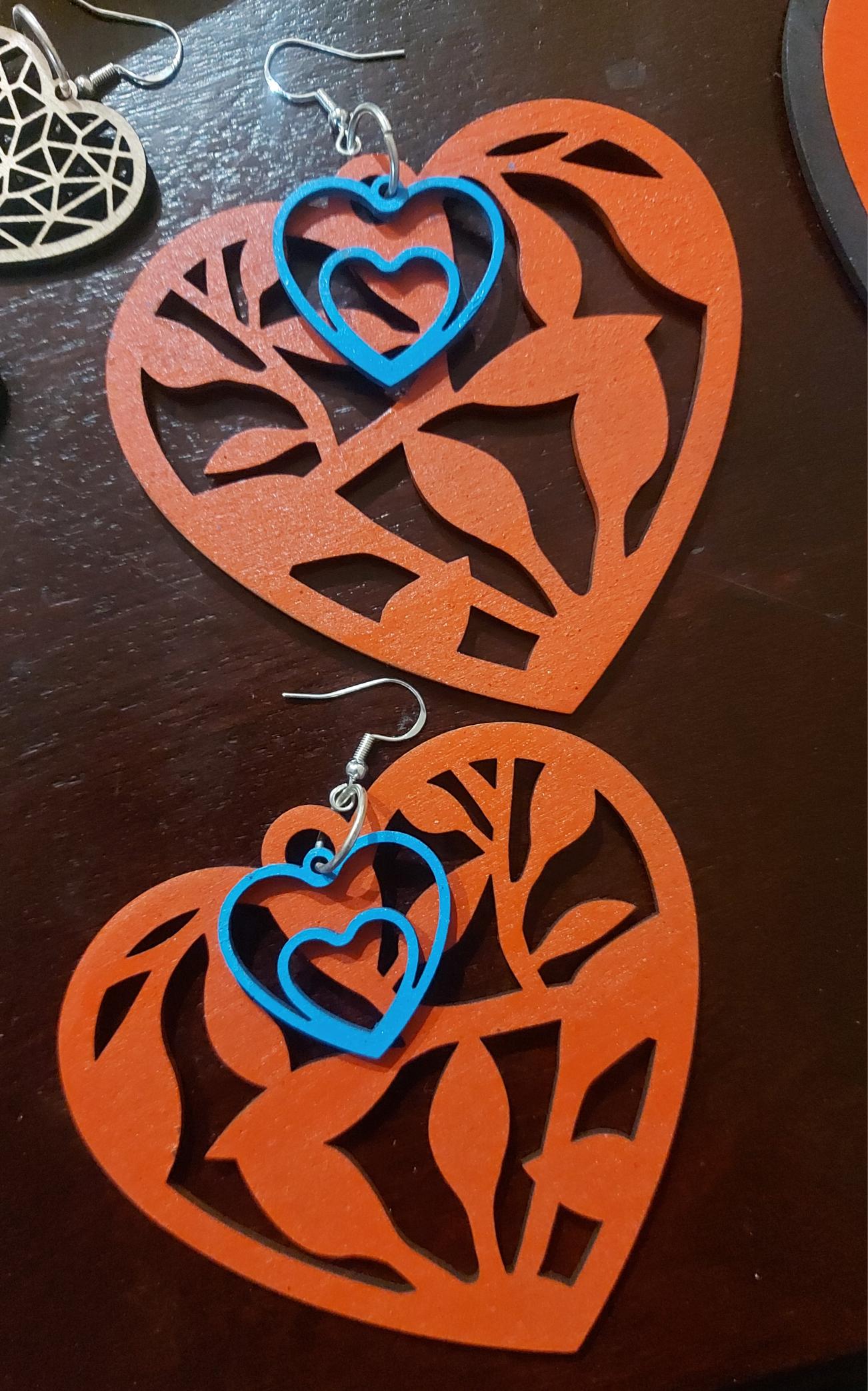 wooden earring heart design large
